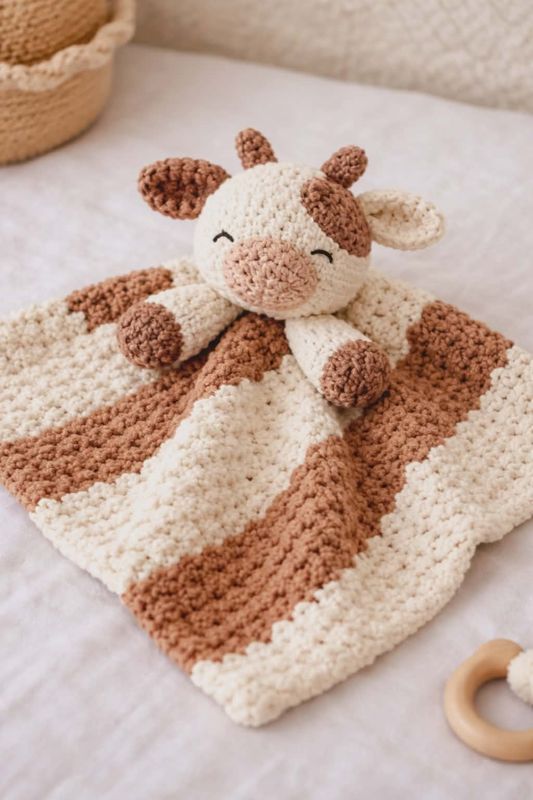 Skapa en charmig virkat ko-filt med detta klassiska virkmönster. Perfekt som snuttefilt, vagnfilt eller första mysfilt till bebis!