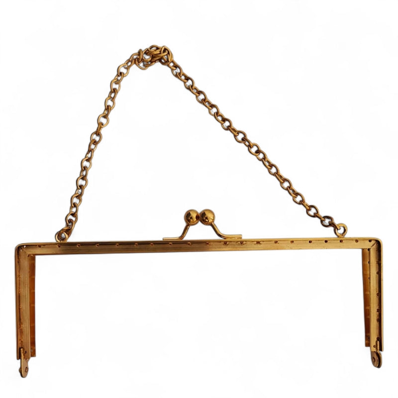 Väskhandtag med kedja i mässing är perfekt för dig som vill skapa professionella och hållbara handväskor. Med sin eleganta portmonnä-öppning får du full överblick över innehållet, samtidigt som den robusta konstruktionen i mjukt stål garanterar lång livslängd.
