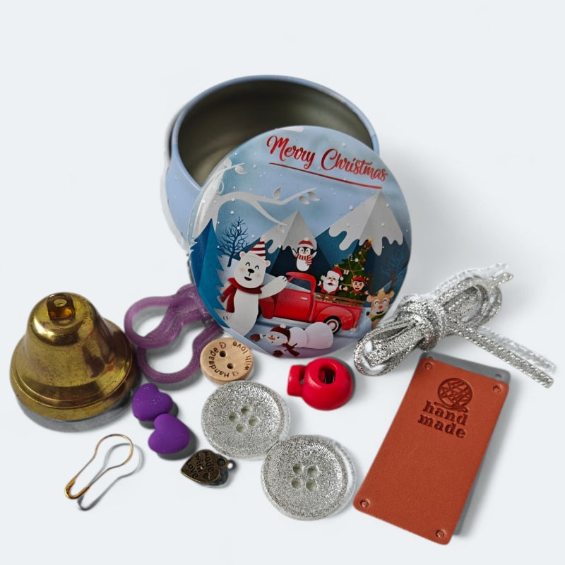 Julklapp/gåbortpresent kitt med Tillbehör i Plåtask