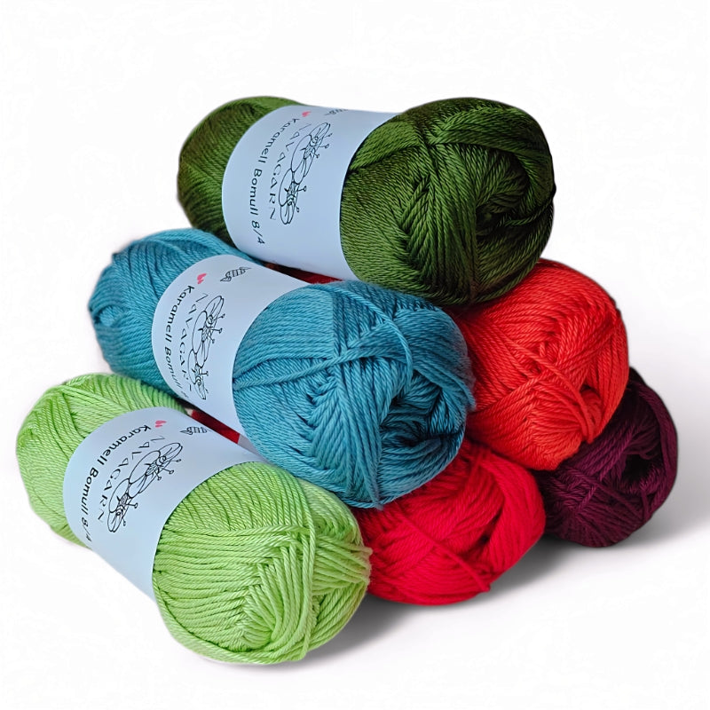 Mercerisering och gassering gör garnet både starkare och glansigare än vanlig bomull - perfekt för kvalitetsmedvetna hantverkare.