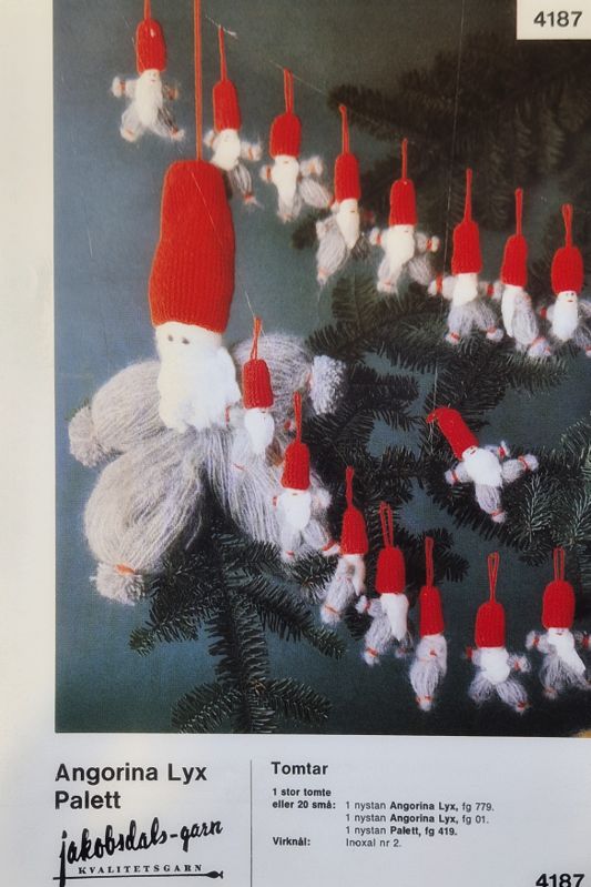 Skapa söta jultomtar med detta äldre virkmönster från Jacobsdals-garn 4187. Perfekt för att skapa charmiga juldekorationer!
