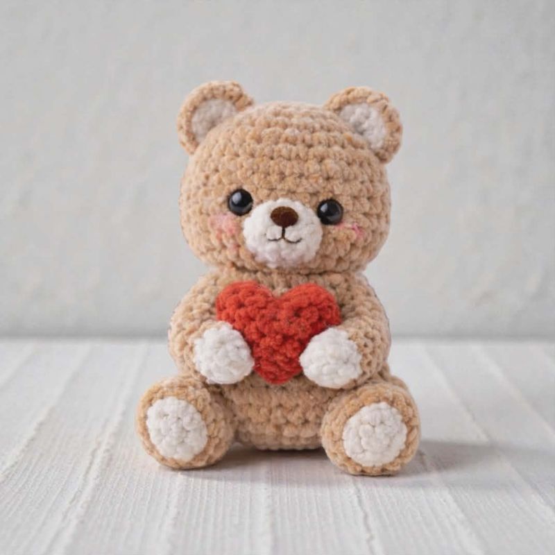 Skapa en charmig virkad nalle i mjukt velour garn med detta klassiska arigurami-mönster. Perfekt som dopgåva, present till den ofödda eller mysig gosedjur till bebis!