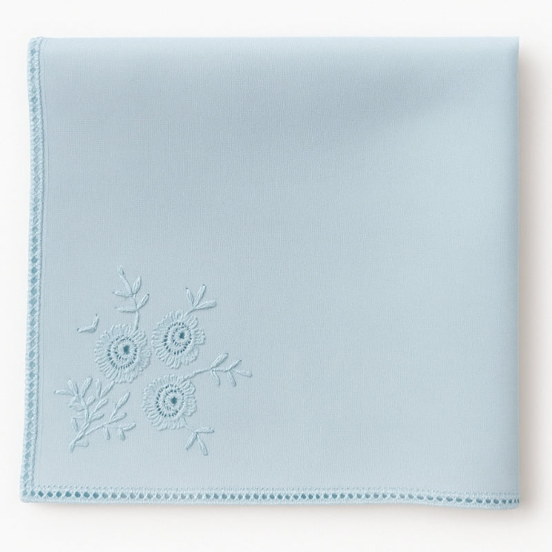 Tillverkad i finare bomullsväv med känsla för detaljer – varje näsduk pryds av ett litet, noggrant utfört broderi och avslutas med en nätt virkad kant som vittnar om genuint hantverk. Detta är inte en massproducerad accessoar, utan en retro-skatt som ger karaktär och personlighet till din kostym eller kavaj.