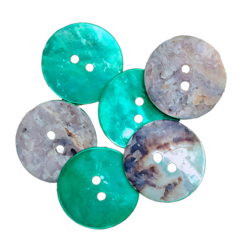 Vackra gröna snäcksskalsknappar som ger dina handarbetsprojekt en naturlig och elegant touch. Dessa unika knappar är tillverkade av återvunnet snäckskal och har en härlig pärlemorskimmer som fångar ljuset på ett vackert sätt.