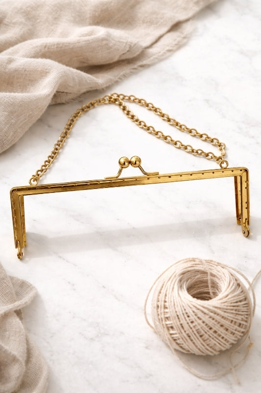Väskhandtag med kedja i mässing är perfekt för dig som vill skapa professionella och hållbara handväskor. Med sin eleganta portmonnä-öppning får du full överblick över innehållet, samtidigt som den robusta konstruktionen i mjukt stål garanterar lång livslängd.