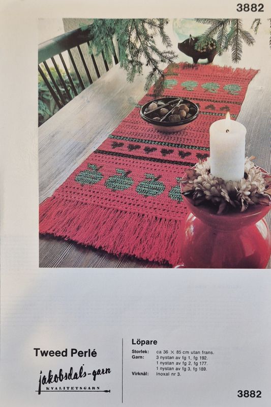 Skapa en vacker virkad jullöpare med detta vintage virkmönster från Jacobsdals-garn 3882. Tidlös skandinavisk juldesign.